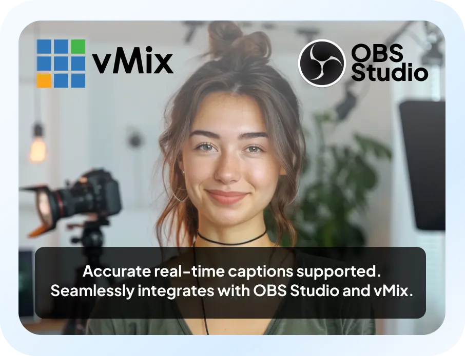 Podłącz bezpłatną aplikację do transkrypcji na żywo do OBS i vMix, aby dodawać napisy w czasie rzeczywistym do swoich transmisji.Zalety tłumacza napisów
